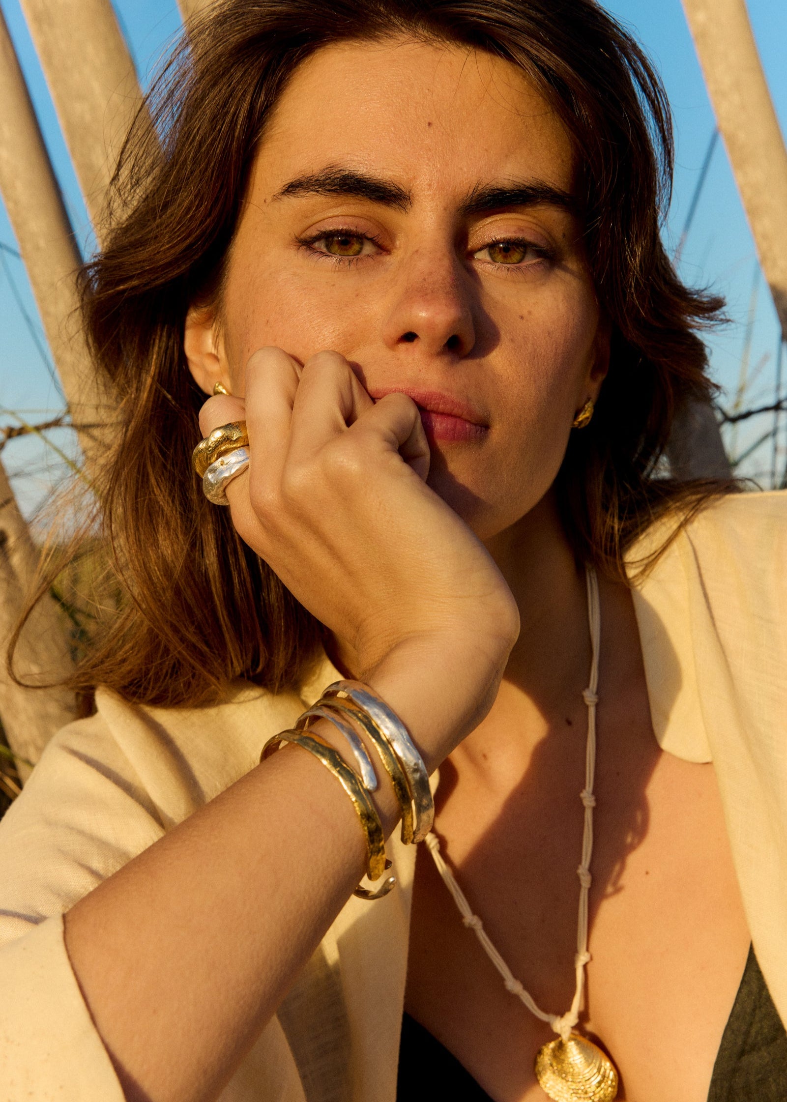 Each piece of jewelry starts as wax, hand-sculpted by Júlia. She lets the process guide her as she shapes small sculptures, exploring textures and volumes.
