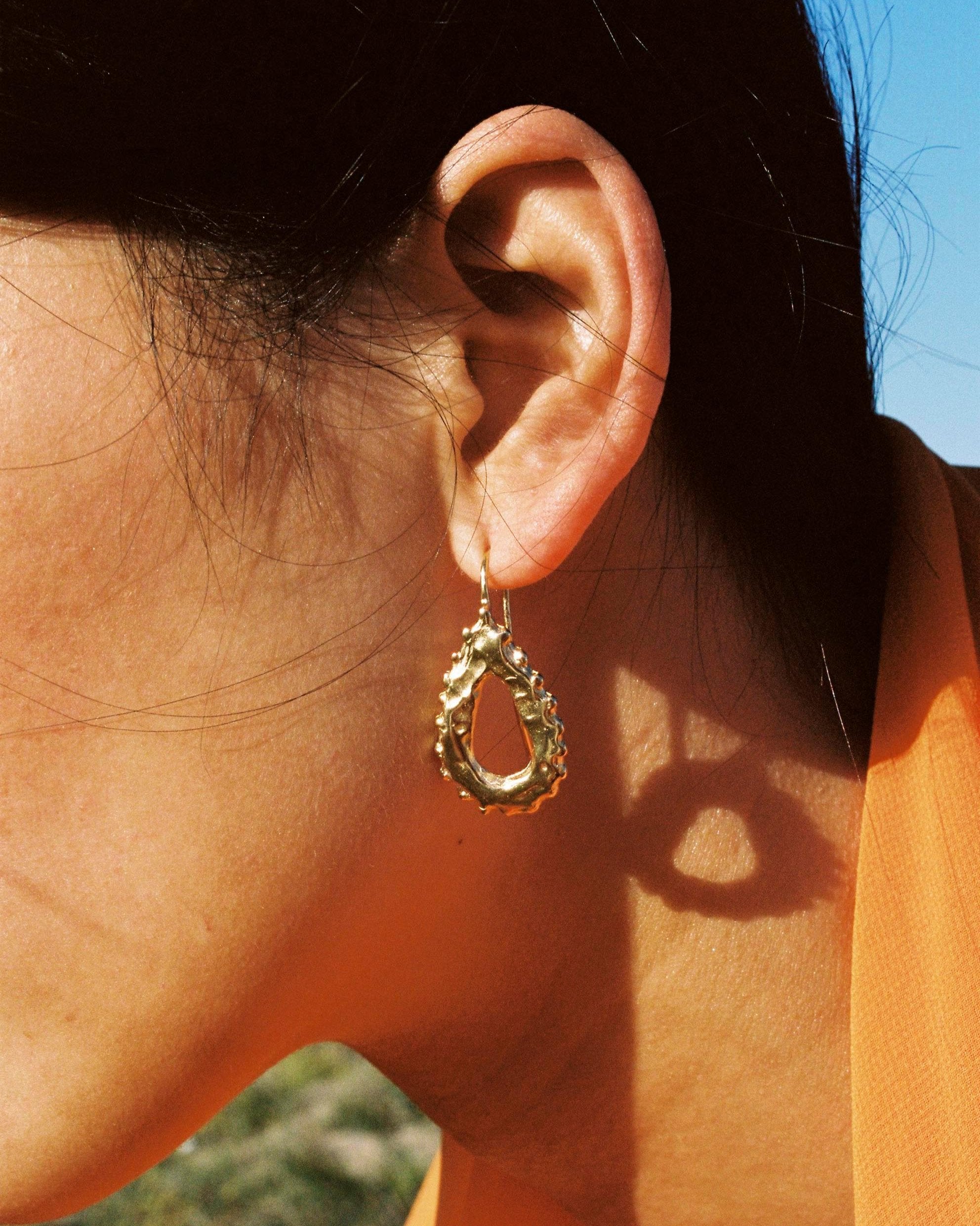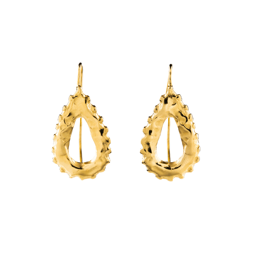 Kaila, handcrafted drop-shaped earrings with an irregular texture.