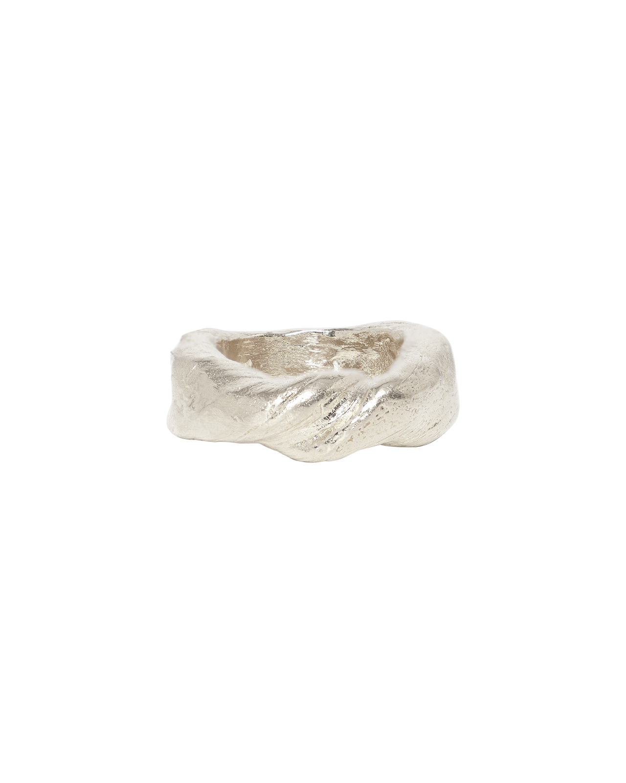 Handmade ring with a twisted silhouette and sculptural design that evokes the flow of the tide.