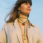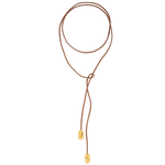 Collar artesanal con cuerda de antelina marrón. Colócalo alrededor del cuello y anúdalo en el centro, o explora las diferentes formas de llevarlo para adaptarlo a tu estilo