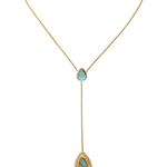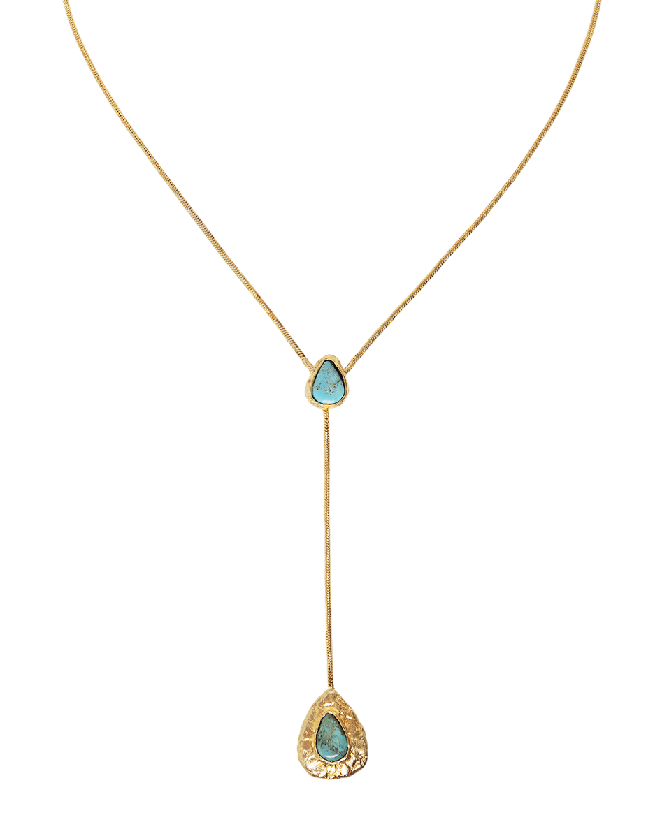 El collar Isala combina dos piezas hechas artesanalmente, cada una con una turquesa natural .