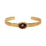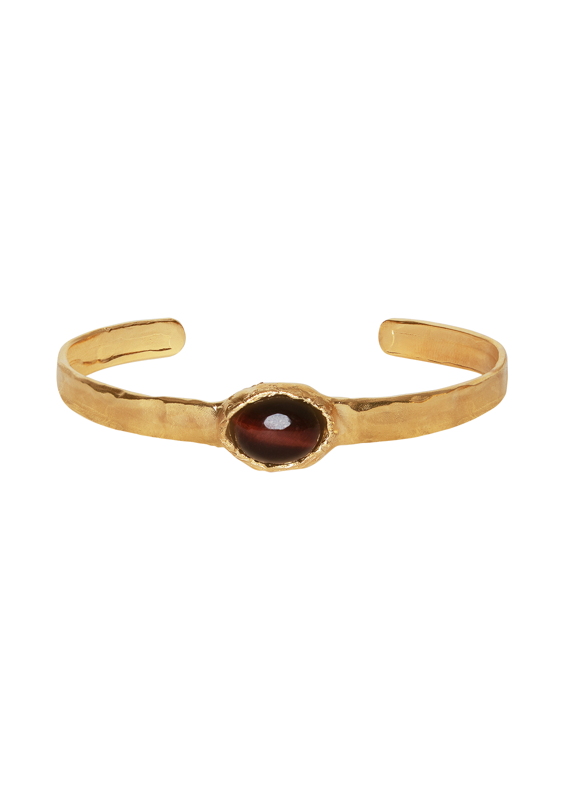Brazalete artesanal con acabado texturizado y piedra natural de ojo de gato.
