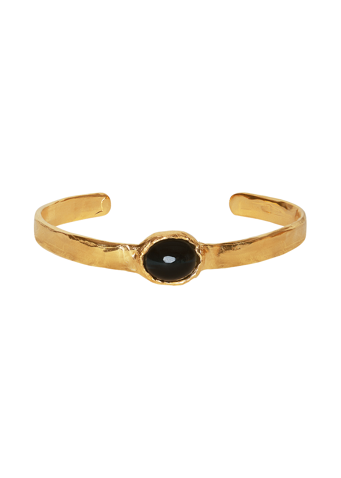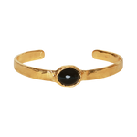 Brazalete artesanal con acabado texturizado y piedra natural de ojo de halcón.