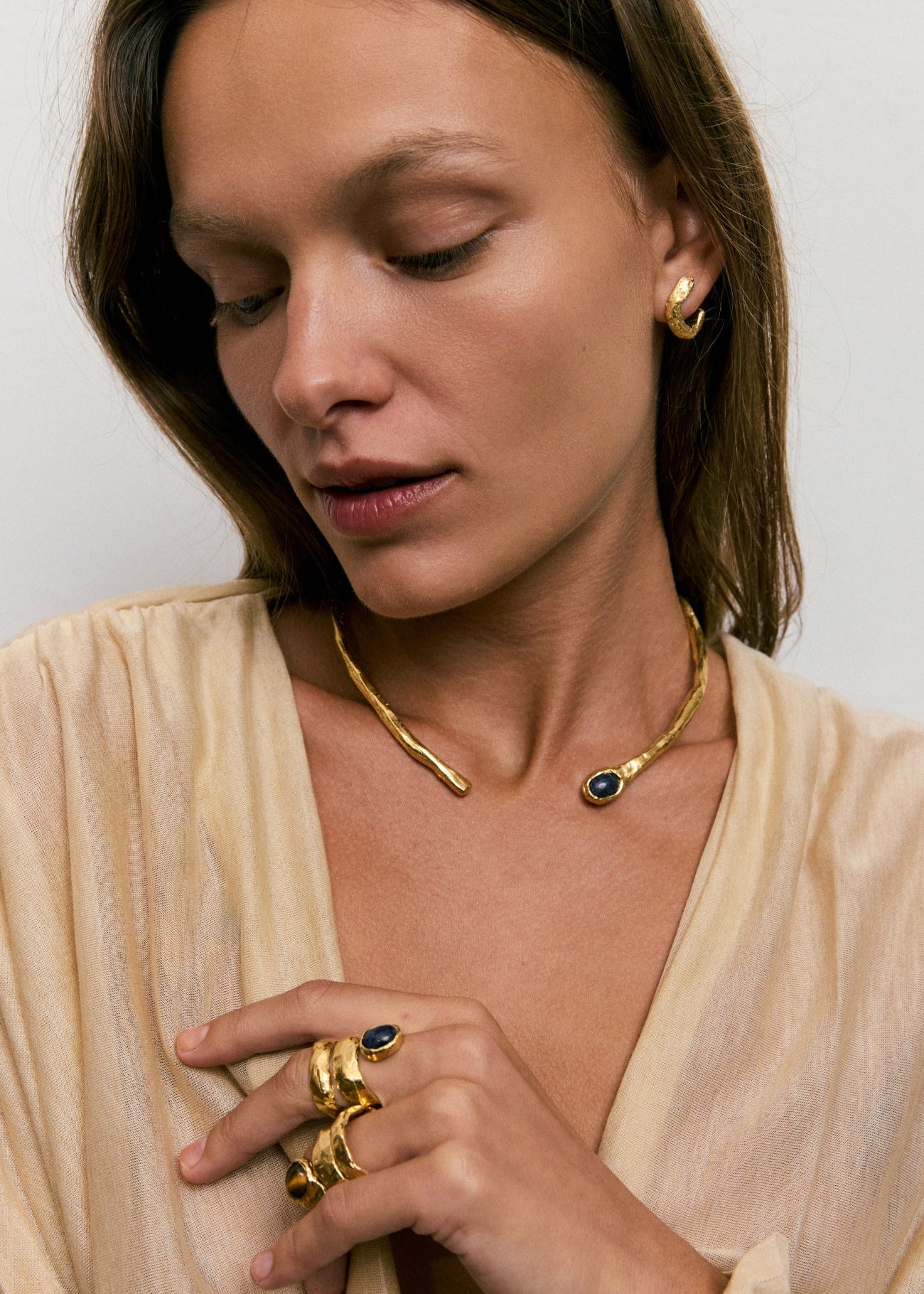 Cada joya nace en cera, esculpida a mano por Júlia, quien se deja guiar por el proceso para crear pequeñas esculturas, explorando texturas y volúmenes.