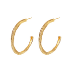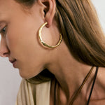 Aros artesanales con silueta escultórica y acabado texturizado.