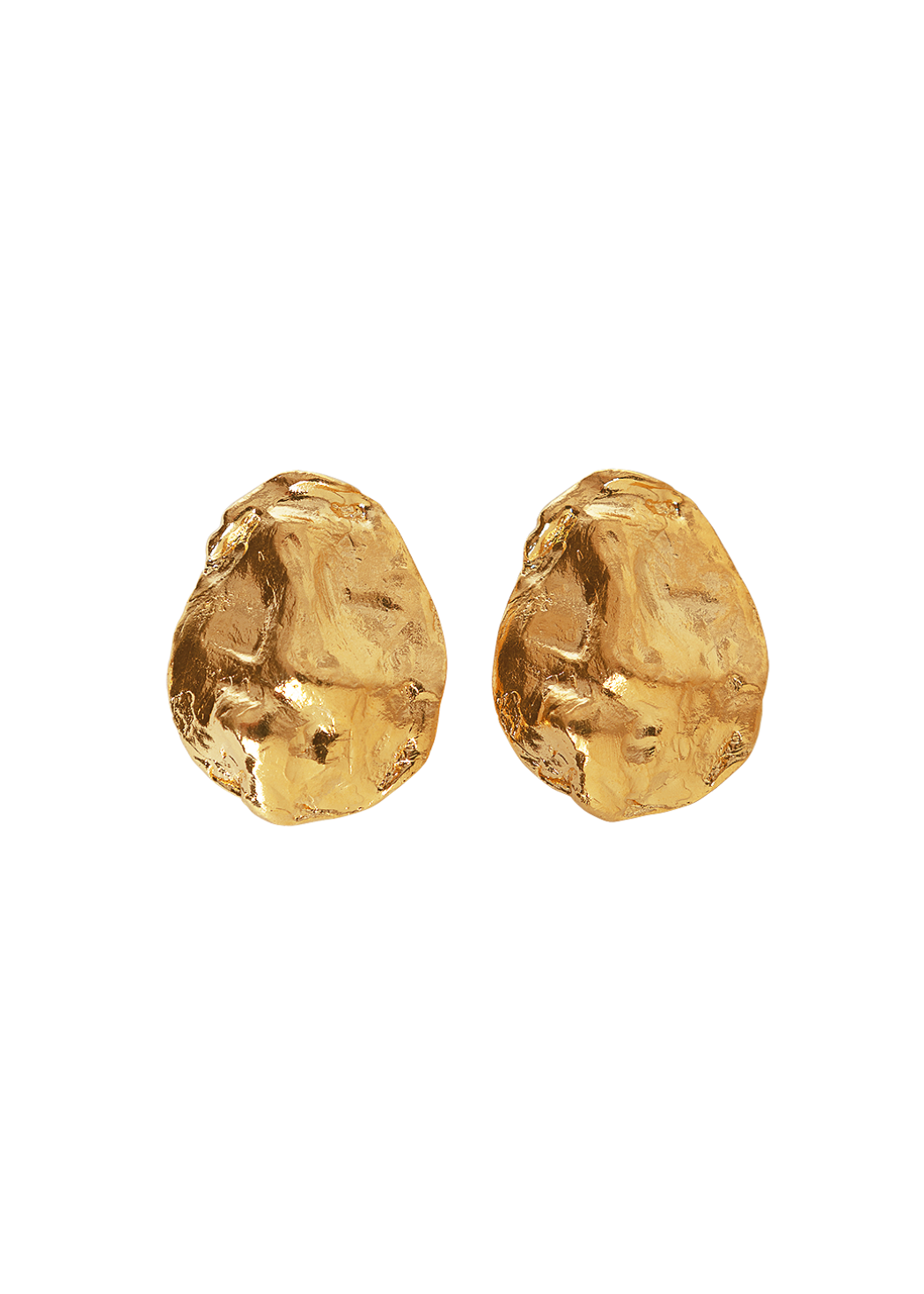 Pendientes artesanales ovalados con volúmenes escultóricos y acabado texturizado.