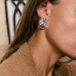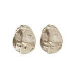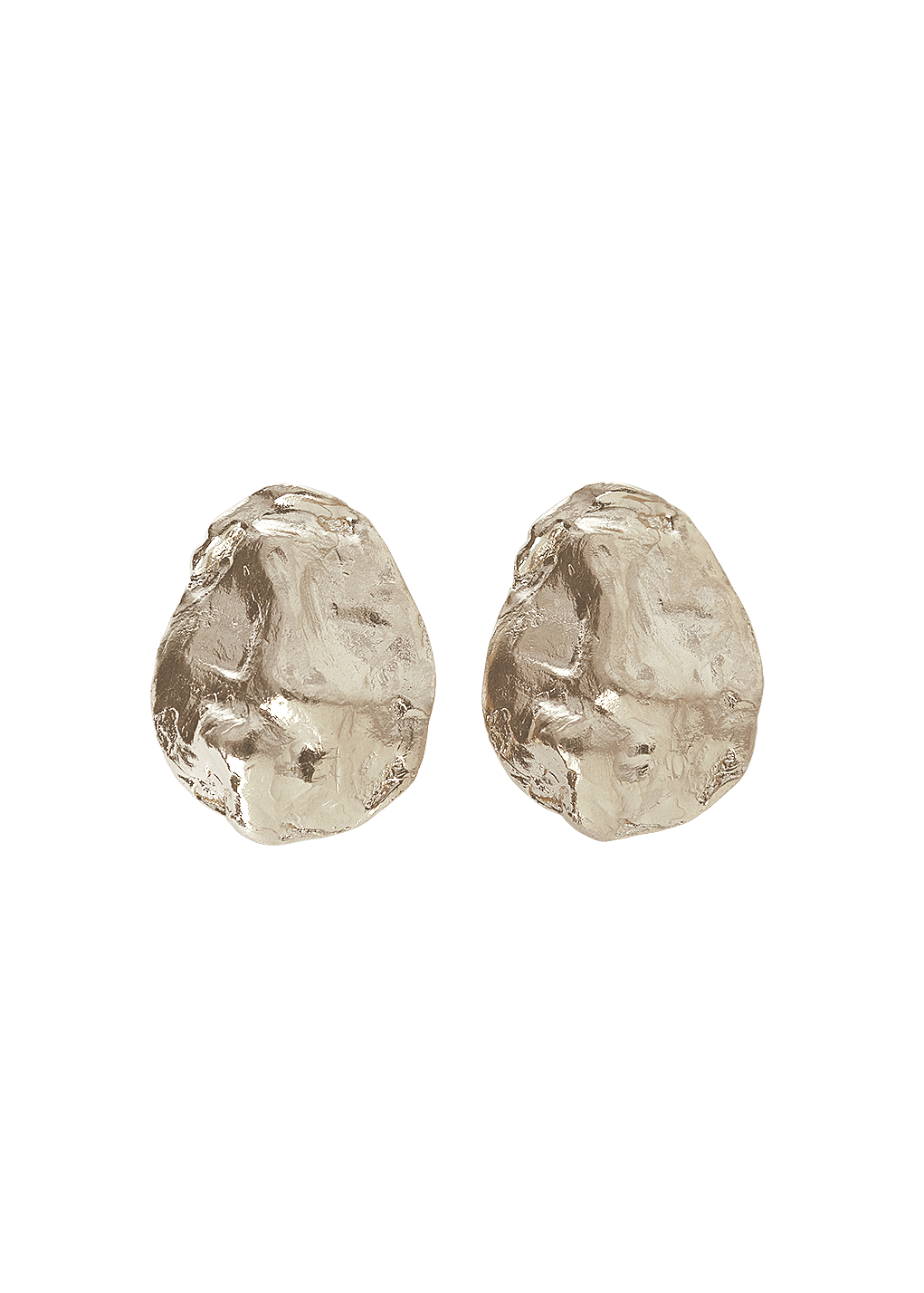 Pendientes artesanales ovalados con volúmenes escultóricos y acabado texturizado.