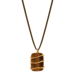 Colgante artesanal con piedra natural de ojo de tigre, envuelto en formas orgánicas chapadas en oro.