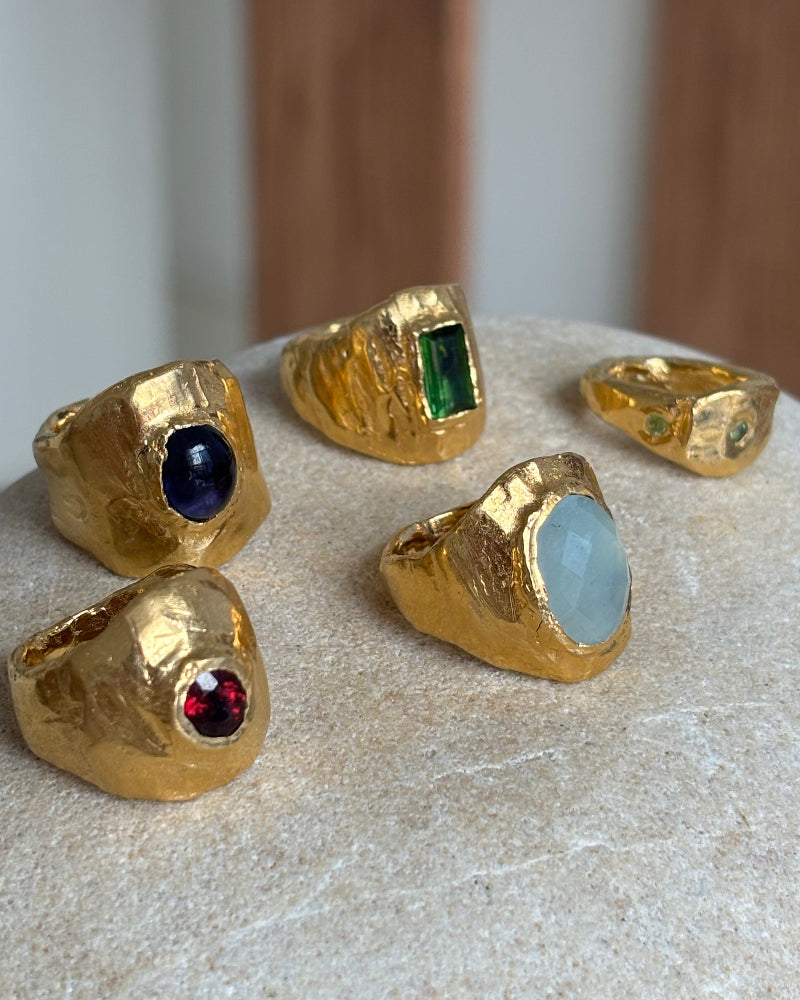 Cada joya nace en cera, esculpida a mano por Júlia, quien se deja guiar por el proceso para crear pequeñas esculturas, explorando texturas y volúmenes.