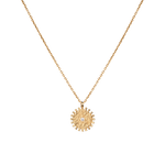 Llénate de luz y de alegría con el collar Sun. Un homenaje al “Astro Rey”, adornado con una circonita blanca. Cadena ajustable de 40, 45 o 48cm. Chapado en oro de 18/23K.